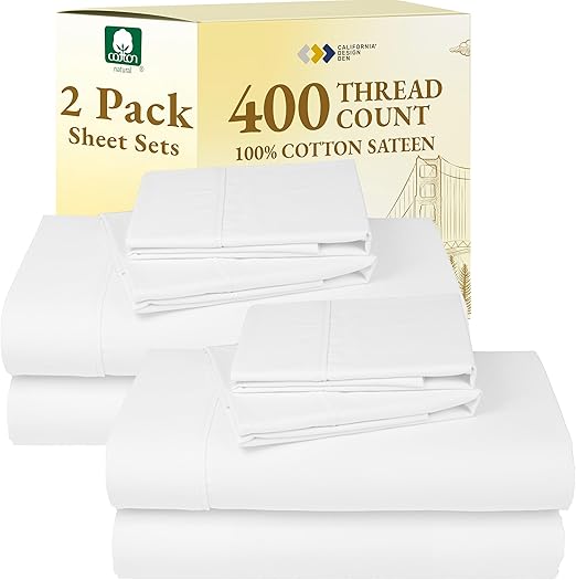 California Design Den 2-Pack 100% Cotton King Size Sheets Set 400 Thread Count Sateen - Soft and Bre