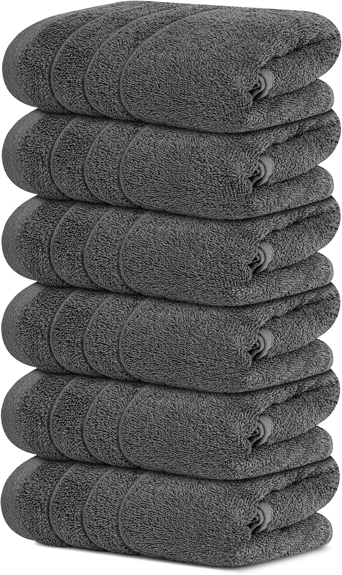 Tens Towels Pack of 6 Hand Towels, 100% Cotton, Lighter Weight, Quick to Dry, 16 x 28 Inches, Super