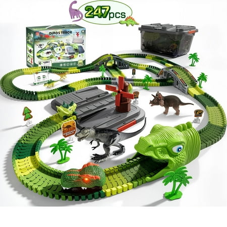 Teblint 247 Pcs Dinosaur Toys Race Car Track Set Toys Flexible Dinosaur World Road Race Track Plays
