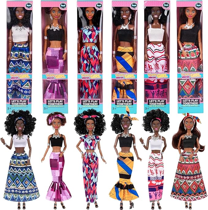 6 Pack African American Fashion Dolls Set with Mix & Match Outfits – 11.5" Posable Black Dolls & 5 A