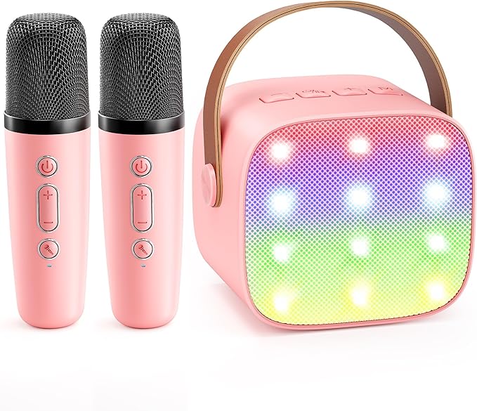 YLL Mini Karaoke Machine for Kids Adults, Portable Bluetooth Speaker with 2 Wireless Microphones,Toy