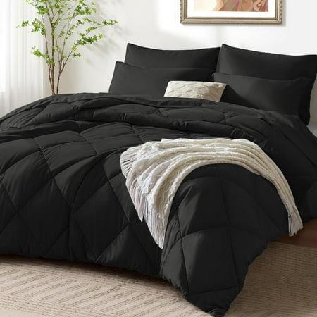 JUSTLET 3 Pieces Twin Size Comforter Set Bed in A Bag Machine Washable Bedding Set Black