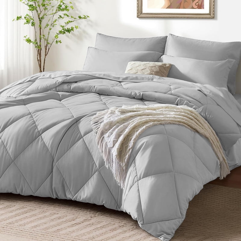 JUSTLET 3 Pieces Twin Size Comforter Set, Bed in A Bag, Machine Washable Bedding Set, Light Grey