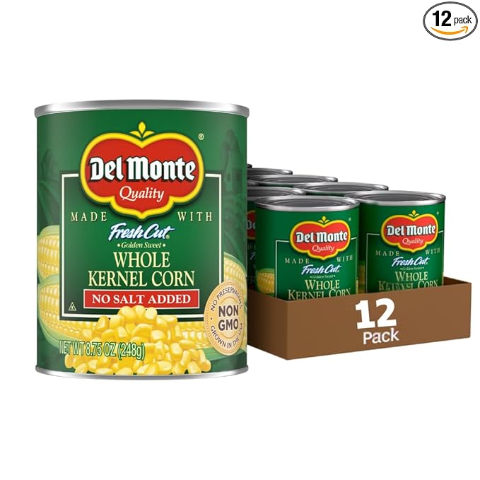 Del Monte Canned Fresh Cut Golden Sweet Whole Kernel Corn No Salt Added, 8.75-Ounce (Pack of 12), Pa