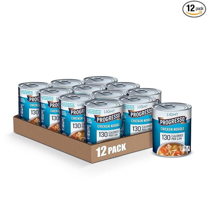 Progresso Light Chicken Noodle Soup, Ready to Serve Canned Soup, 18.5 oz (Pack of 12)