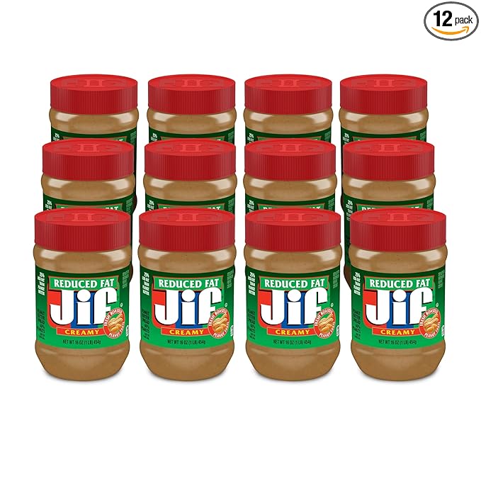 Jif Reduced Fat Creamy Peanut Butter Spread, 16 Ounces (Pack of 12), 60% Peanuts