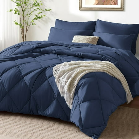 JUSTLET 3 Pieces Twin Size Comforter Set Bed in A Bag Machine Washable Bedding Set Navy Nlue