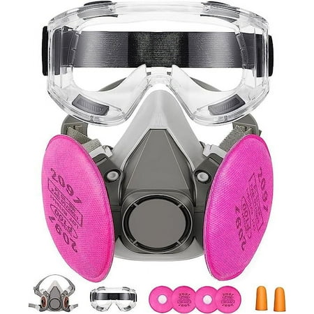 【Complete Suit 】: You will receive 1x half facepiece 6200 1x safety goggles 2x replaceable filter boxes 2 x Earplugs .If you have any questions please contact us directly. We will provide great after-sale support 【Good Material】: Our half facepiece is made of high grade silicone material which is non-toxic soft comfortable durable safe and healthy.The soft silicone will not make your facial skin feel uncomfortable. 【Adjustable & Comfortable Strap】: The half facepiece and safety glasses are equipped with elastic headbands that is easily adjusted which is suitable for most head sizes.This half facepiece is designed for tight and comfortable wearing 【Eyes&Ears Protection】: Our professional half facepiece use a double filtration system to effectively block particles in the air. Goggle